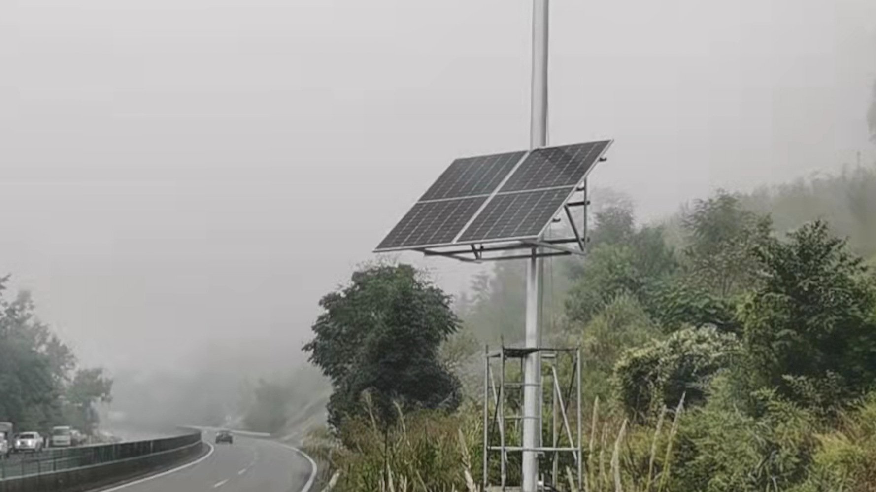 坐標:貴州?。∶利愘F州,美麗畢節,這個項目是太陽能供電系統在貴州省視頻加密高速公路上的應用,主要給監控攝像機和傳輸交換機設備供電,本項目采用了單塊545W的光伏組件,共2塊,組成1090W的太陽能光伏組件,控制器采用華昱信通MPPT高功率版的控制器,電池采用磷酸鐵鋰電池51.2v100AH,代替了傳統的鉛酸膠體電池,磷酸鐵鋰電池充電快,體積小,電池循環次數多,使用壽命更長,對高速公路連續陰雨天的效果比傳統方式有了明顯進步。